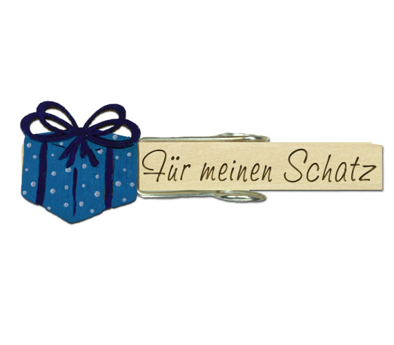 Mobile Preview: Glupperl mit einem Geschenk-Päckchen in blau