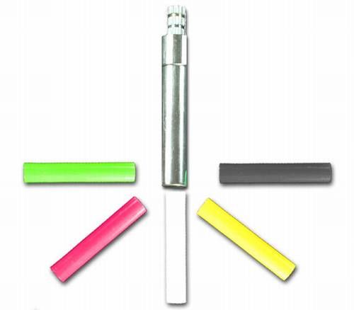Sie erklären Ihrem Gast, dass Sie sofort am Gewicht die Farbe des Stäbchens in der geschlossenen silbernen Röhre erkennen werden, auch wenn Ihr Zuschauer das farbige Stäbchen hinter Ihrem Rücken in das silberne Röhrchen hinein stecken wird.