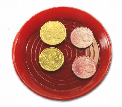 Mit diesem Münztablett können Sie vor den Augen Ihrer Zuschauer Münzen ohne Fingerfertigkeit vermehren.