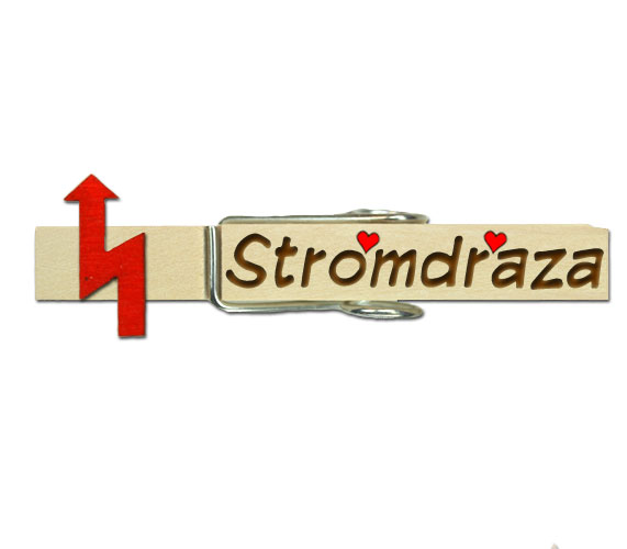 Eine Wäscheklammer mit Namen und einen coolen Spruch für die Elektrikergilde mit dem Blitz.