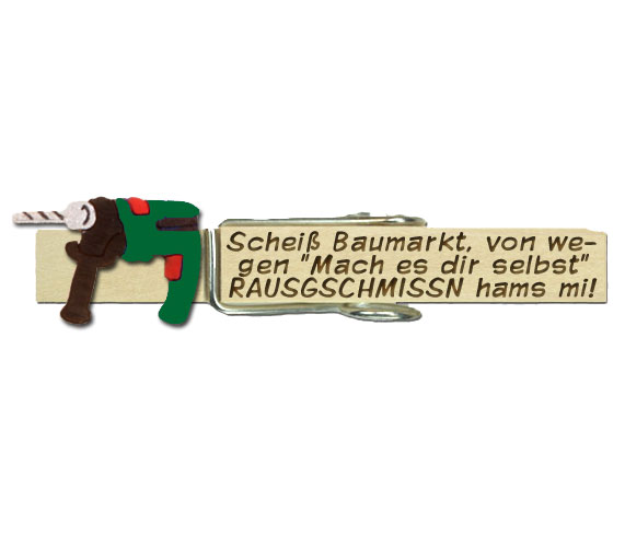 Unsere Glupperl mit einem coolen Spruch, wie hier unsere handbemalte Bohrmaschine, wurde individuell und exklusiv für einen Bohrmaschinenhersteller angefertigt!