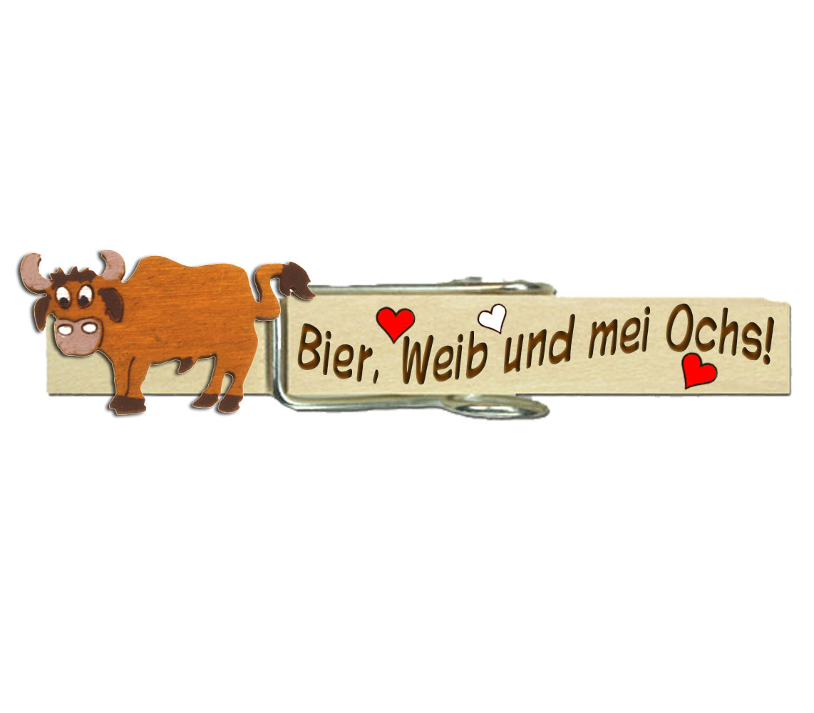 Klammer mit einerm handbemalten hellbraunen Ochsen