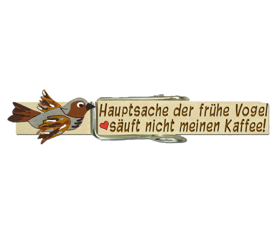 Dieses Glupperl mit einem professionell bemalten Spatzen und einem coolen Spruch.