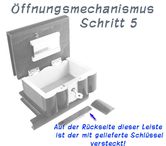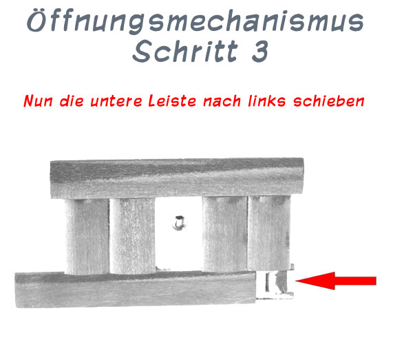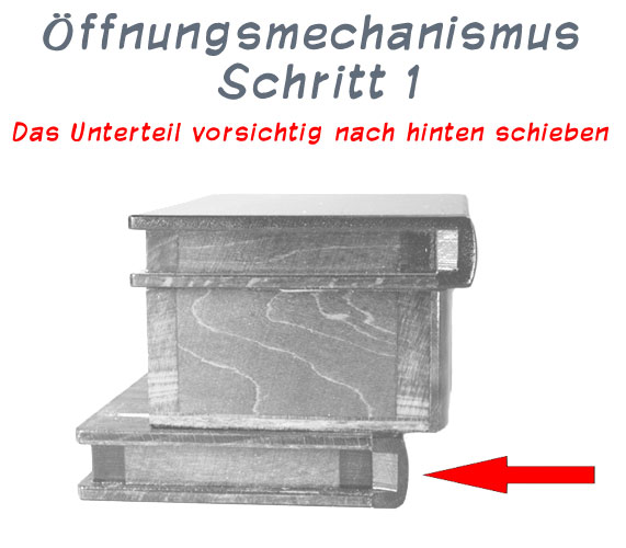 Und so wird diese handgeschnitze Bücher-Trick-Box Gr. 2 aus Holz geöffnet: