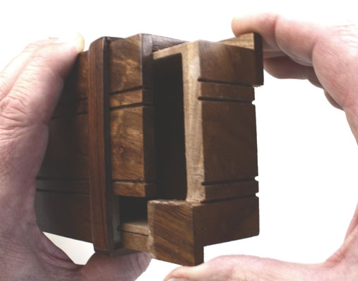 Diese Kiste läßt sich nur auf einer Seite diagonal (siehe nächstes Bild) öffnen. Bitte nur an den Kanten den Schubladen heraus ziehen!