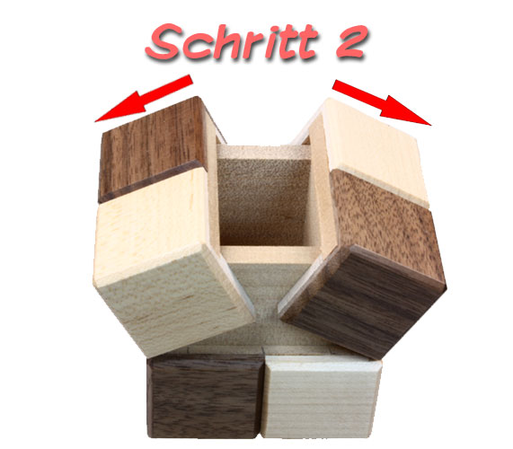 Diese Trickkiste wird vorsichtig auseinander gezogen. Man muss halt alle Richtungen versuchen.