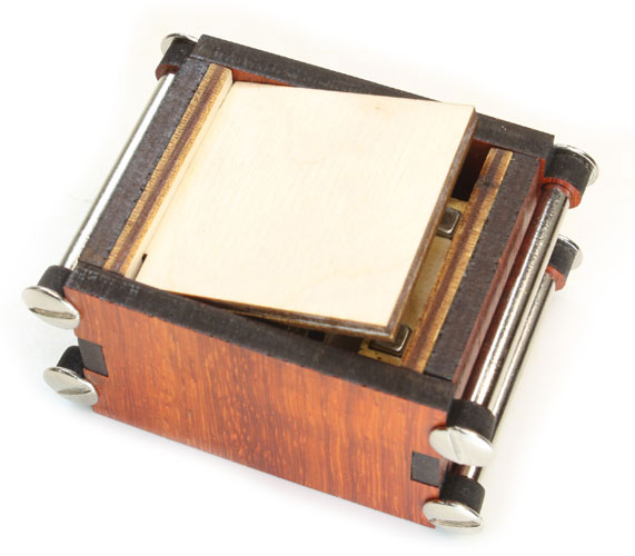 ... mit dem besonderen Etwas, die eigentlich nicht zu öffnen ist. Die Öffnungsmechanismus in dieser Trickbox ist gut versteckt. Mit dem 20 Centstück und dem Schlüssel, kann der Boden nach unten heraus gedrückt werden!
