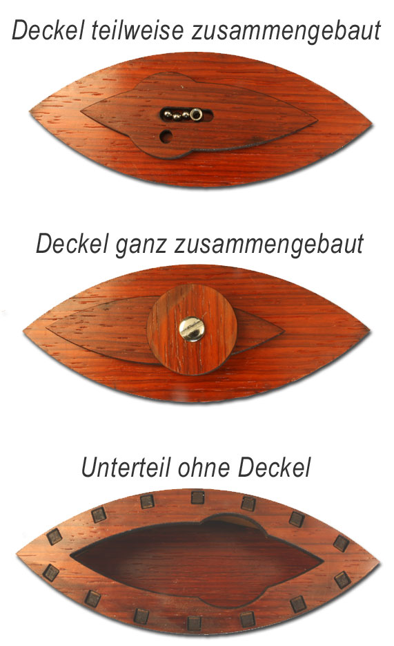 Auf den ersten Blick sieht die Box gar nicht so schwierig aus sie zu öffnen, aber trotz dieser detailierten Fotos ist das fast unmöglich. Ich persönlich habe keine Ahnung, wie das Teil aufgehen soll.